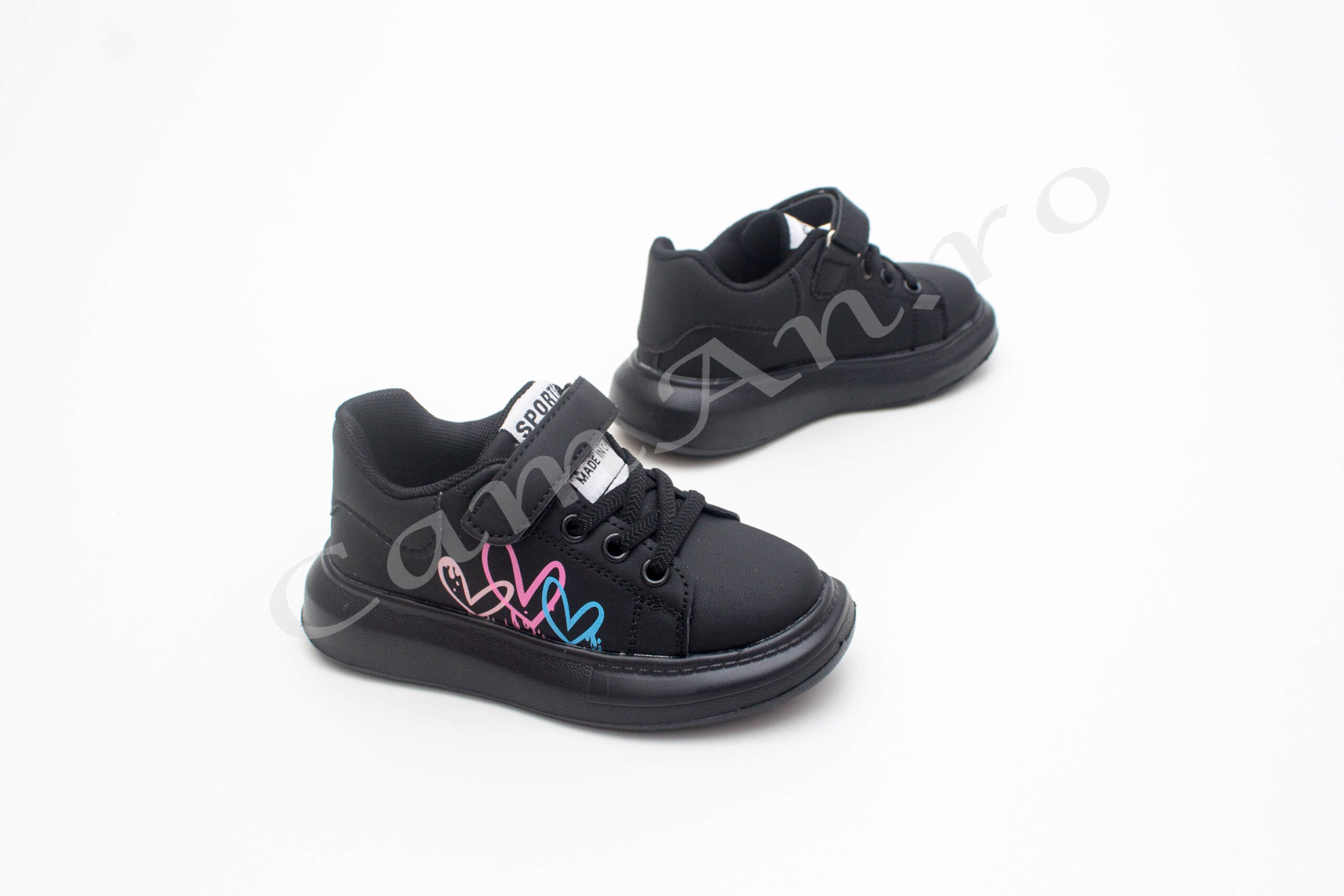 Adidasi negri cu inimioare pentru fete
