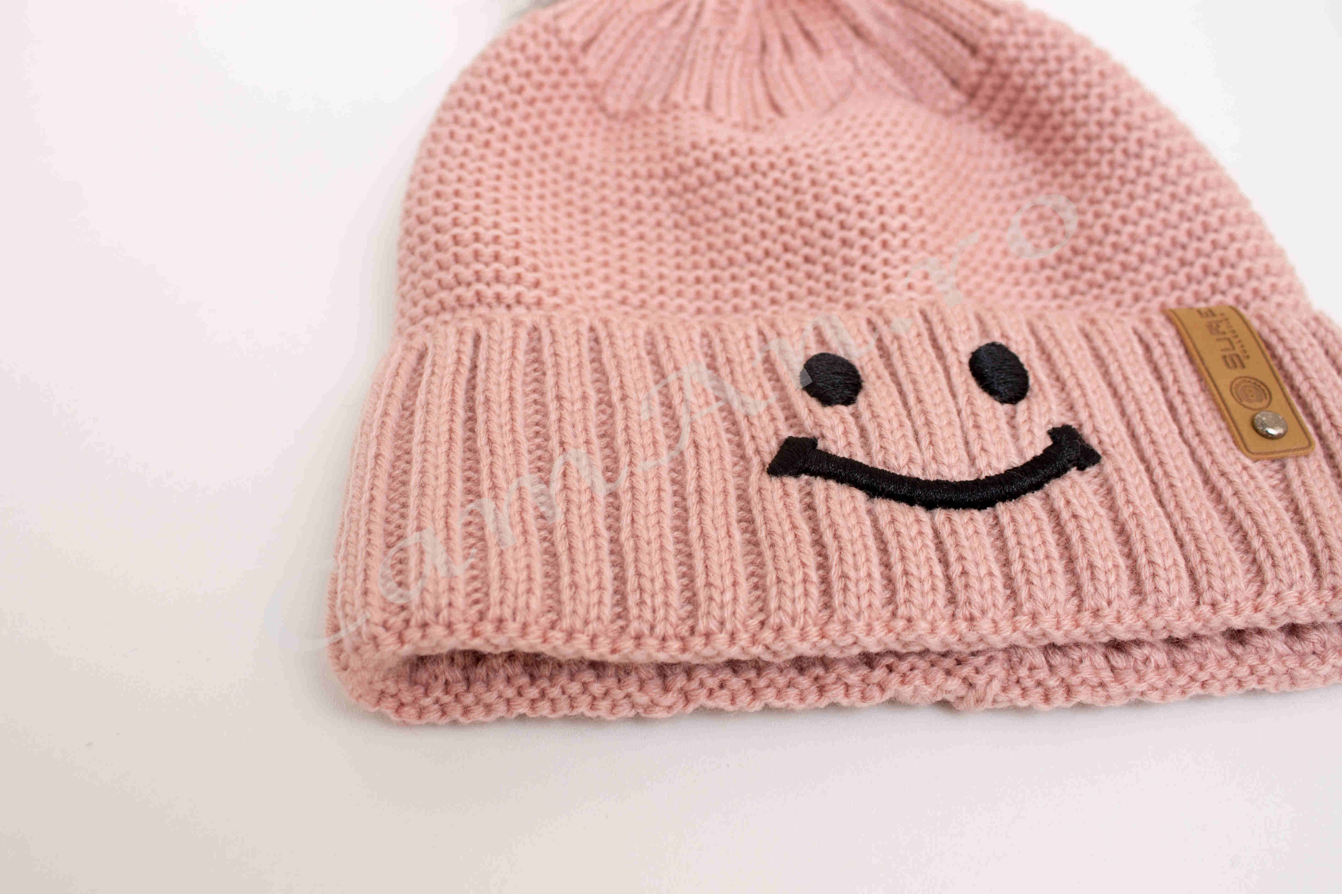 Caciula tricotata, cu mot pentu copii